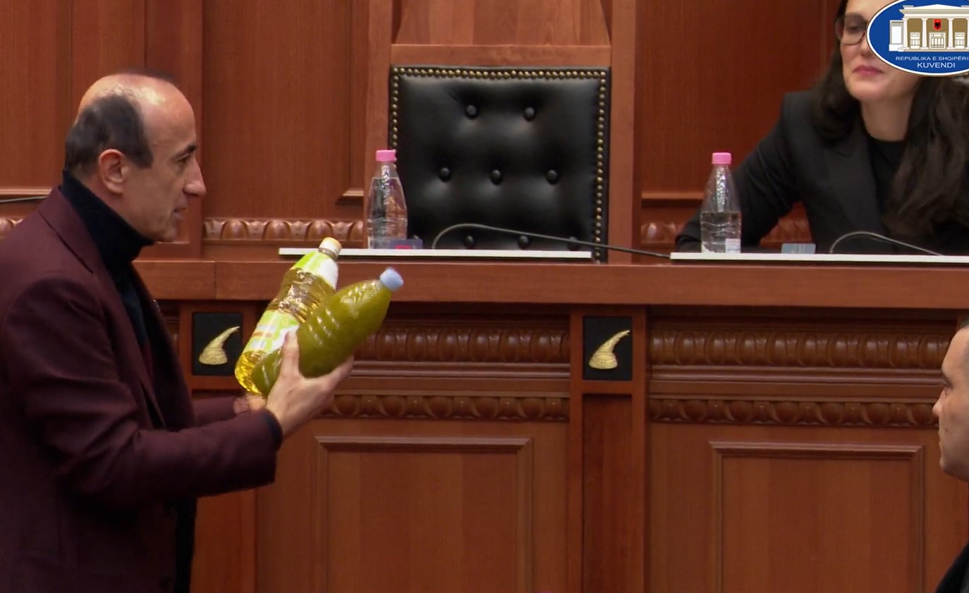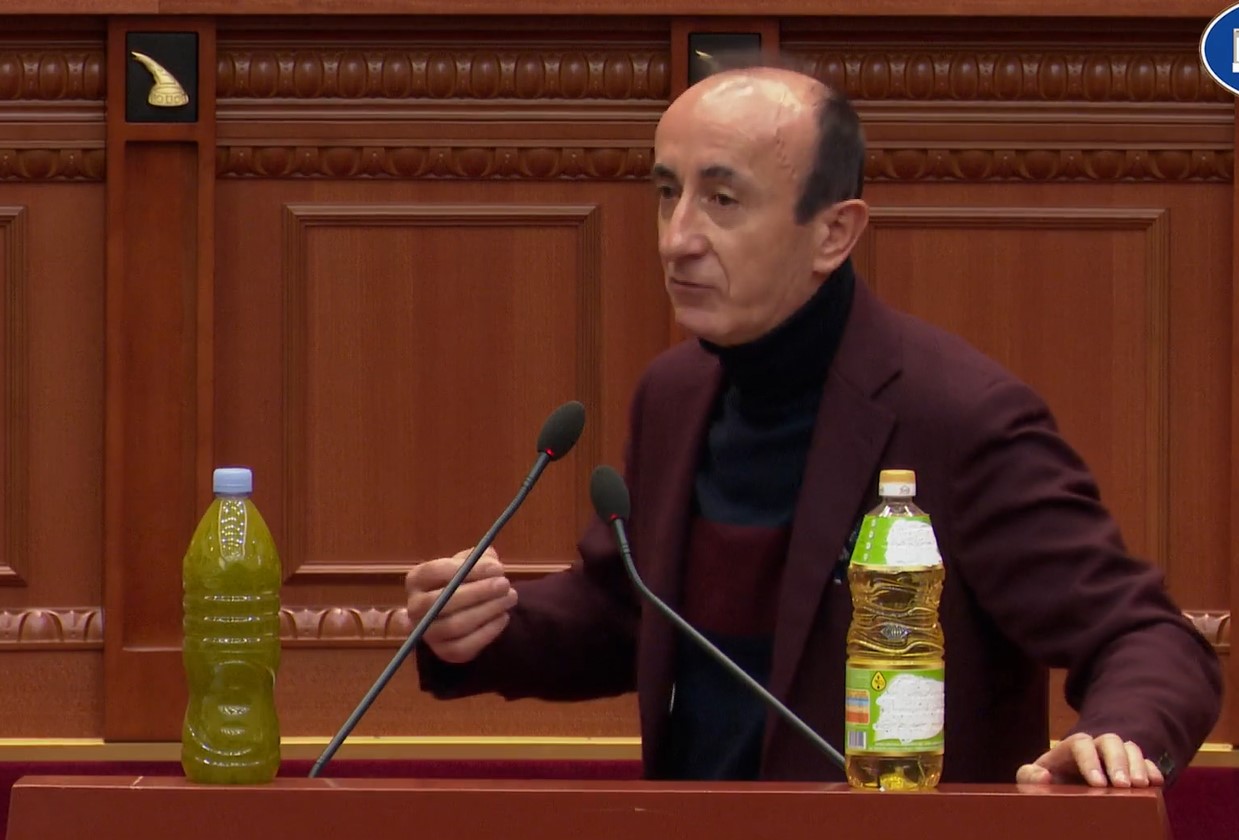 Deputeti i Partisë Demokratike Dashnor Sula ka zgjedhur një mënyrë të veçantë për të ngritur problemin e fermerëve që merren me nxjerrjen e vajit të ullirit në vend.