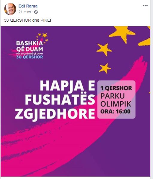 “30 QERSHOR dhe PIKË!”, ka shkruar ai.