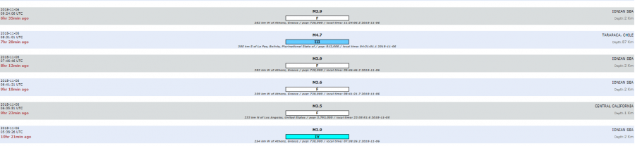 4 tërmete të forta janë kanë rënë gjatë ditës së sotme afër vendit tonë, me epiqendër në detin Jon.Sipas të dhënave tërmete kanë qenë të shkallës 3.9 ballë më i forti dhe 3.5 ballë më i dobëti. Lëkundjet janë ndier në Athinë dhe në ishujt përreth.