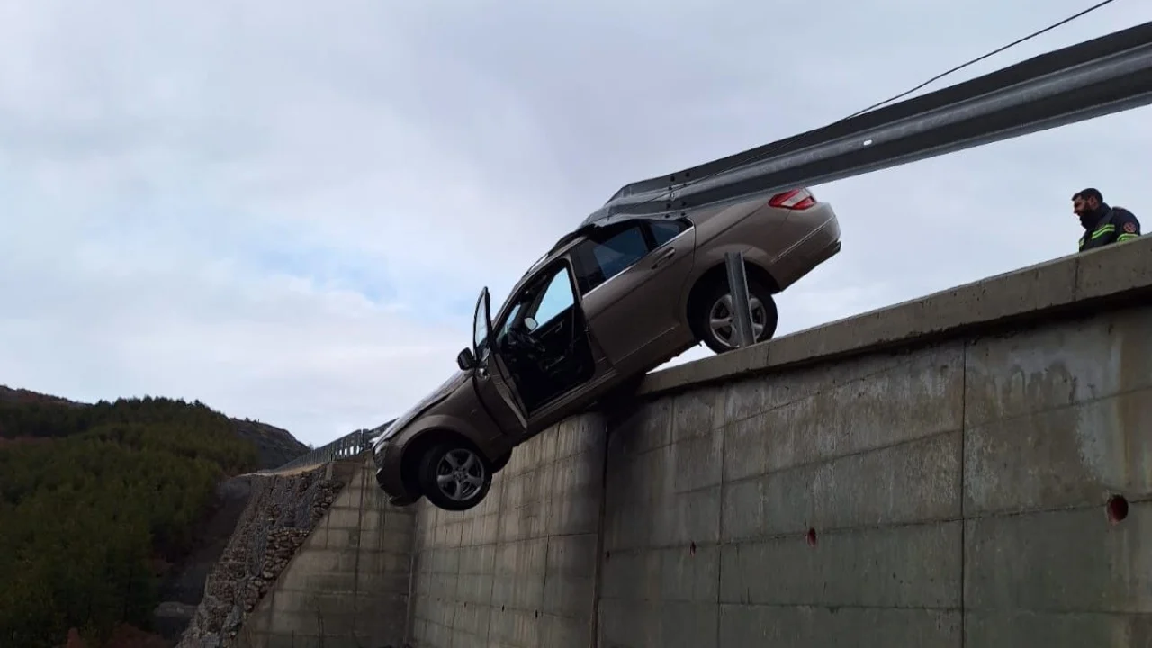 Aksident i frikshëm, makina qëndron pezull mes barrierës dhe kanalit (FOTO)