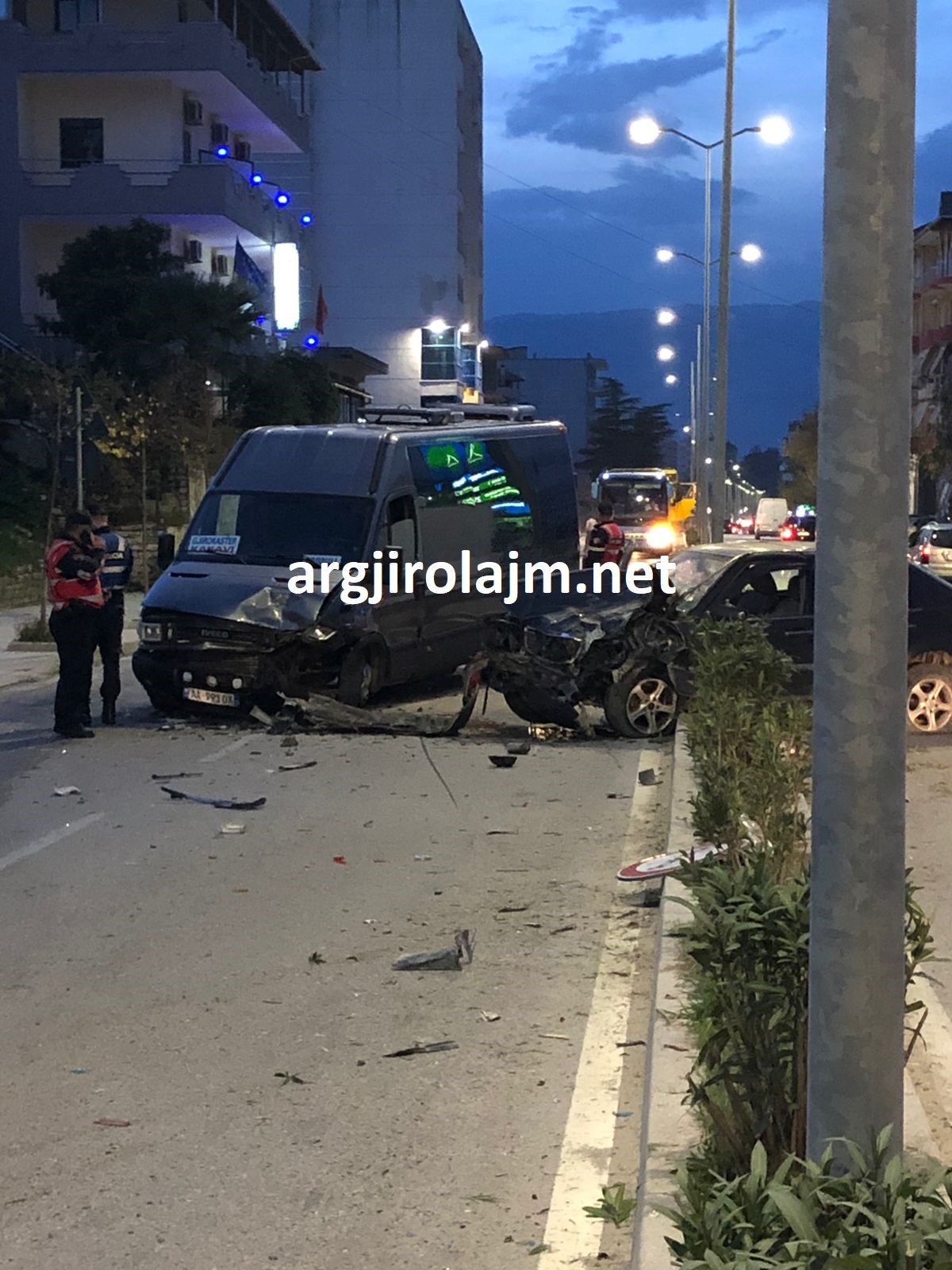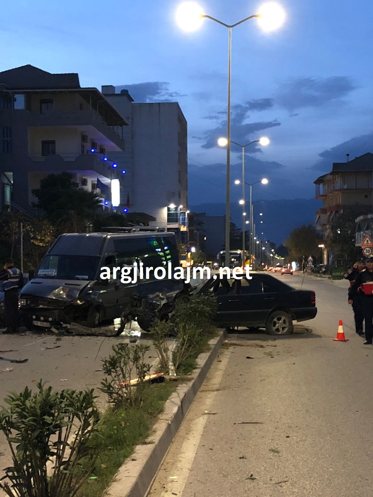 Një aksident i frikshëm ka ndodhur mbrëmjen e sotme në Gjirokastër, në rrugën nacionale pranë rrethrrotullimit të lagjes “Punëtori”. Argjirolajm.net mëson se dy automjete janë përplasur me njëra-tjetrën. Më konkretisht një makinë tip “Benz” me një furgon të linjës Gjirokastër-Kakavijë. Fatmirësisht nuk raportohet për pasoja në njerëz, por vetëm për të plagosur dhe dëme materiale. Policia ndodhet në vendin e ngjarjes. Argjirolajm.net sjell pamje nga vendi i ngjarjes.