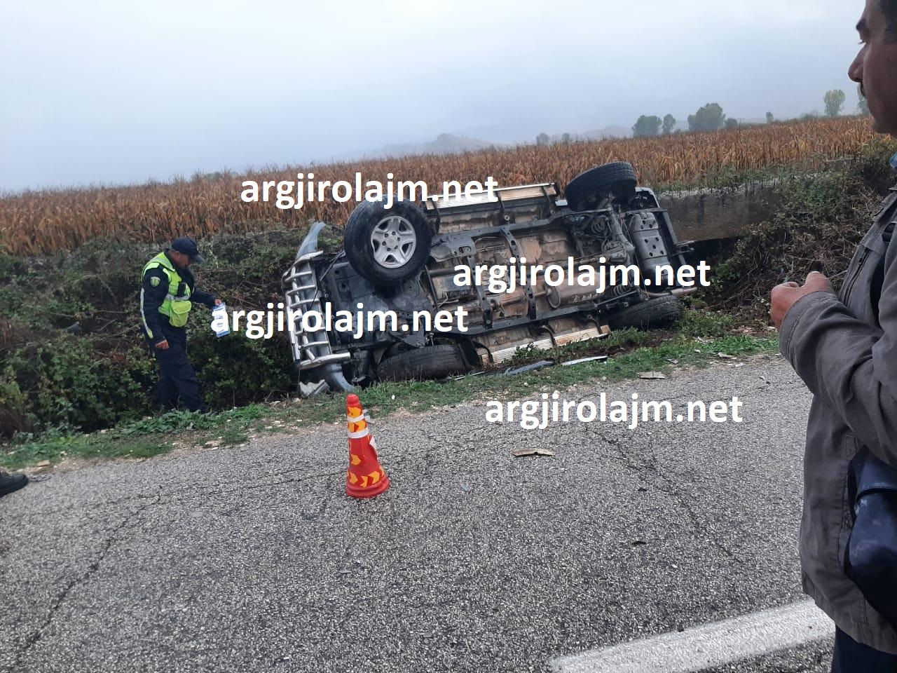 Një aksident i frikshëm ka ndodhur pasditen e sotme në rrugën që lidh Sofratikën me Libohovën. Dy automjete janë përplasur me njëra-tjetrën. Për pasojë një prej tyre është përmbysur në kanal. Fatmirësisht nuk ka humbje jete, por është lënduar lehtë vetëm drejtuesi i fuoristradës që doli nga rruga, shtetasi me inicialet I.K. Ai është transportuar në spitalin e Gjirokastrës për ndihmë mjekësore. Ndërkohë policia në vendngjarje ka bërë shoqërimin e drejtuesit të makinës tjetër. Rrethanat e aksidentit janë ende të paqarta. ©argjiroja.net