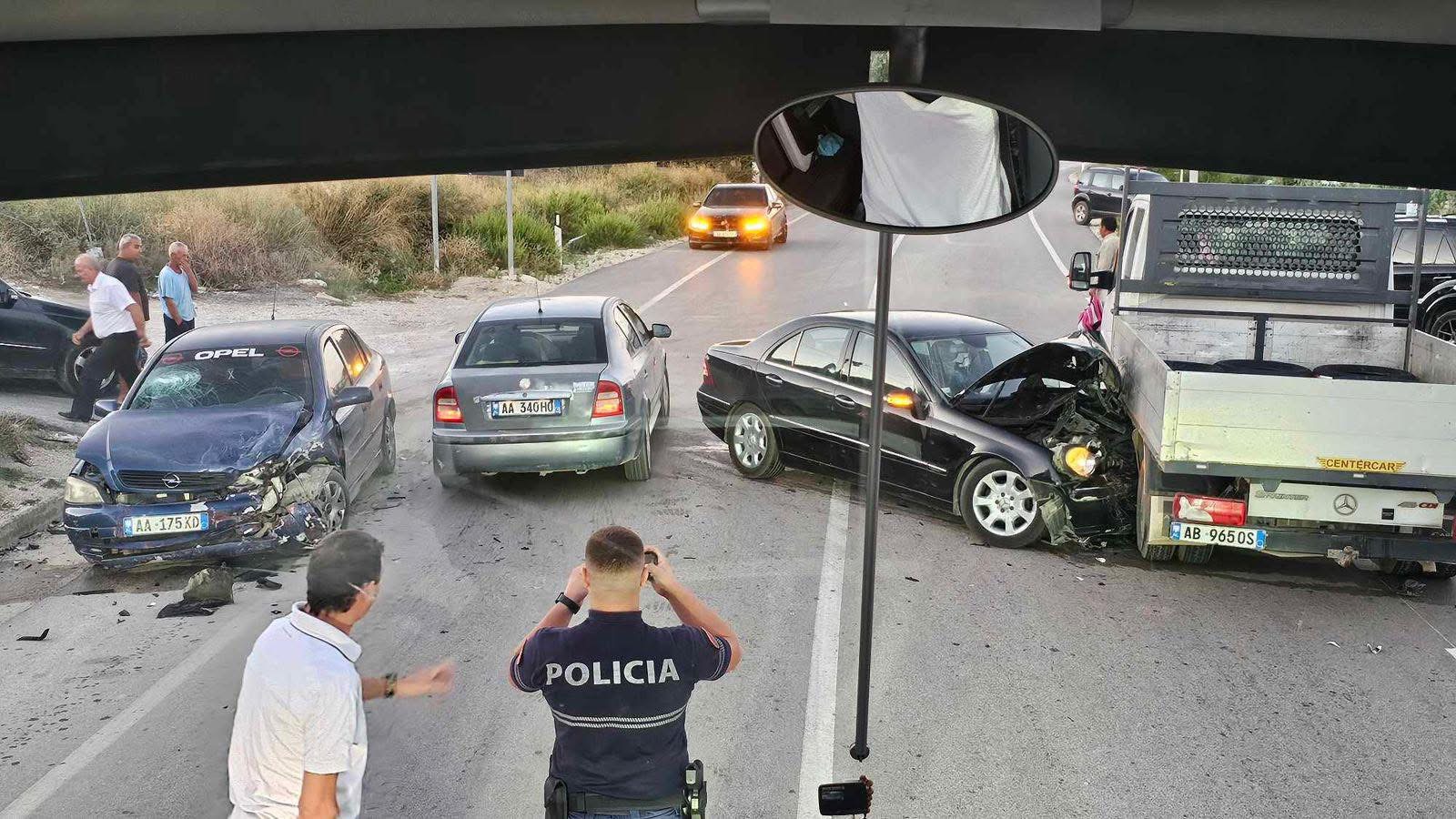 Dy automjete janë përplasur me njëri-tjetrin, ndërsa njëri prej tyre është goditur më pas edhe nga një kamionçinë. Si pasojë e aksidentit ka mbetur e lënduar lehtë një grua, pasagjere në automjetin Opel.