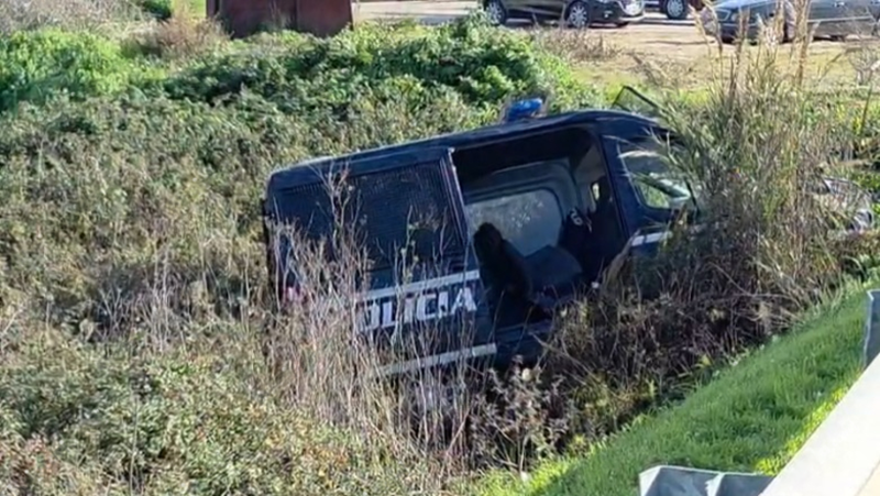 Një aksident ka ndodhur mesditën e sotme në vendin e quajtur “ Kthesa e Çakranit”, ku një furgon i Forcave të Ndërhyrjes së Shpejtë (FNSH) është përplasur me një automjet tip “Benz” dhe më pas ka përfunduar në kanal.