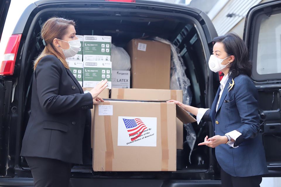Ambasadorja amerikane në Tiranë, Yuri Kim, ka qenë personalisht në Ministrinë e Shëndetësisë ku kanë dhuruar mjete të mbrojtjes personale për ekipet mjekësore në vijën e parë të përballjes me koronavirusin.