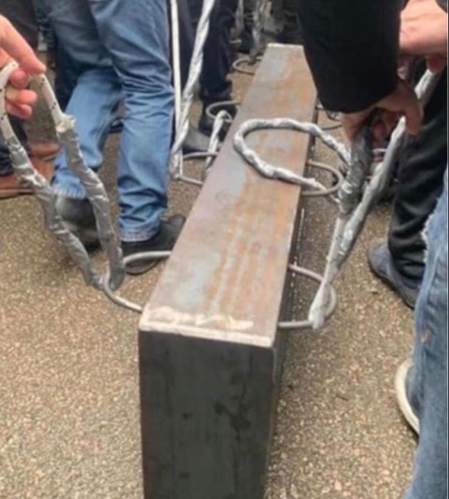 Gazetari Artan Hoxha ka ndarë një foto në rrjetet sociale të një hekuri që sipas tij është përdorur në protestën e 8 Janarit nga mbështetësit e Berishës për të hapur dyert e selisë.