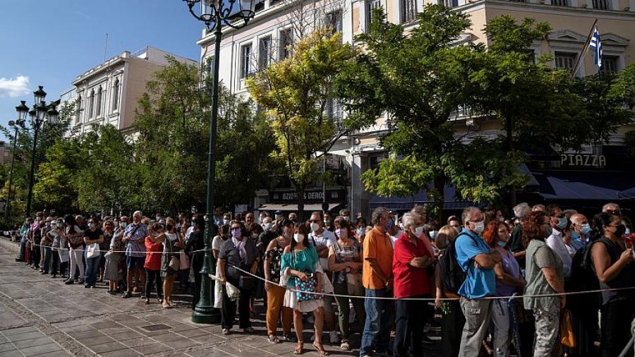 Mijëra qytetarë, duke respektuar masat mbrojtëse për shkak të një pandemie, prisnin me durim në Dioqezën e Athinës për t’i thënë lamtumirë atij në udhëtimin e tij drejt përjetësisë.