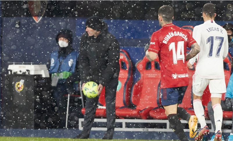 Një ditë para ndeshjes së djeshme ndaj Osasuna avioni i Real Madrid fluturoi 3 orë mbi Pamplonën për shkak se ishte e pamundur të ulej prej motit të keq. Më pas mbrëmjen e djeshme kur gjatë gjithë ndeshjes ra borë, ishte e pamundur që “Los Blancos” të fitonin dhe nuk shkuan më shumë se një barazim pa gola.