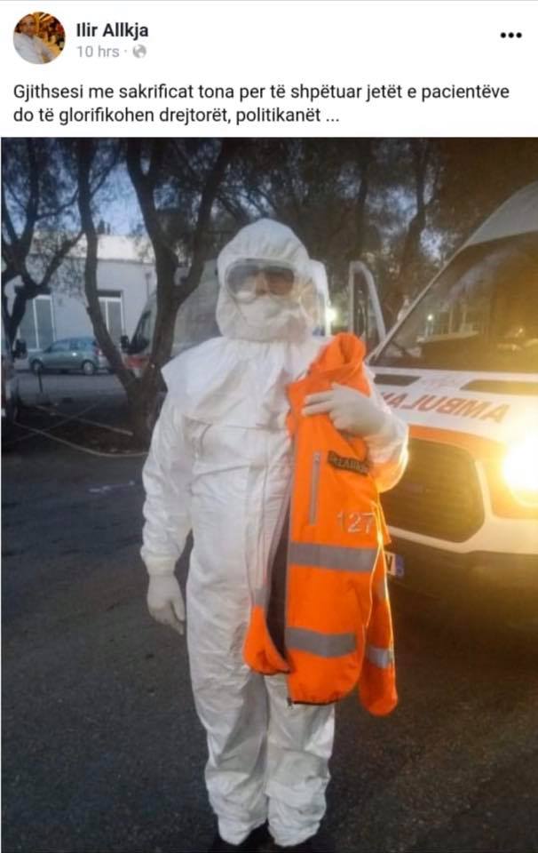 Vetë Allkja gjatë gjithë kohës ka publikuar foto me veshje speciale duke u shprehur i gatshëm në luftën kundër Covid-19.