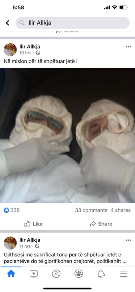 Vetë Allkja gjatë gjithë kohës ka publikuar foto me veshje speciale duke u shprehur i gatshëm në luftën kundër Covid-19.