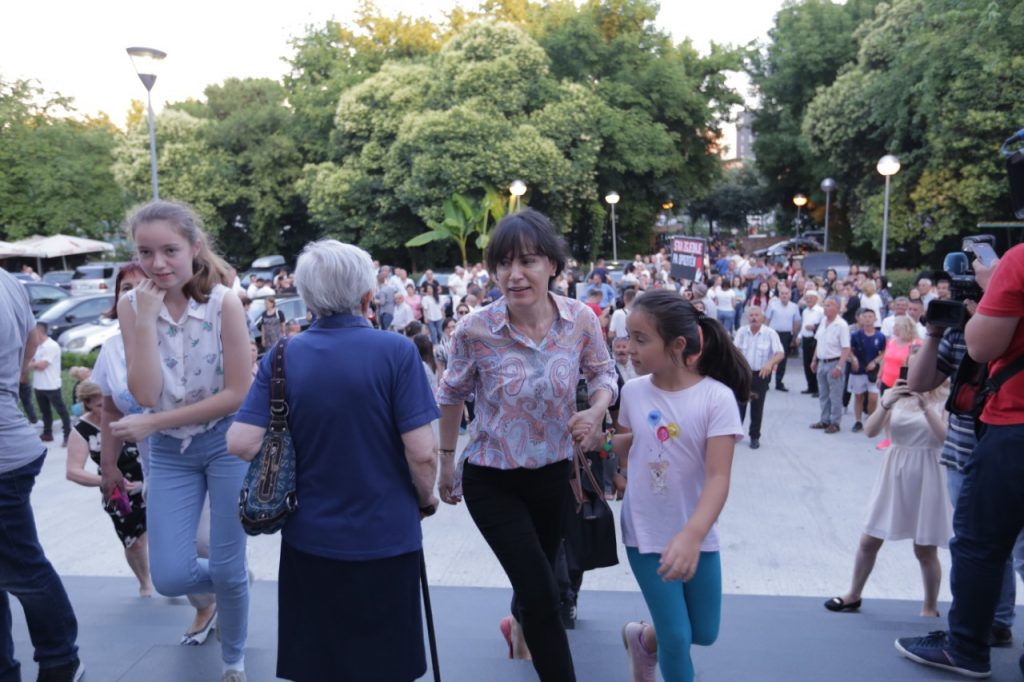 Në selinë e PD-së, ka mbërritur Aurela Basha e shoqëruar me vajzat për t’iu bashkuar më pas protestuesve në sheshin kryesor përpara Kryeministrisë.