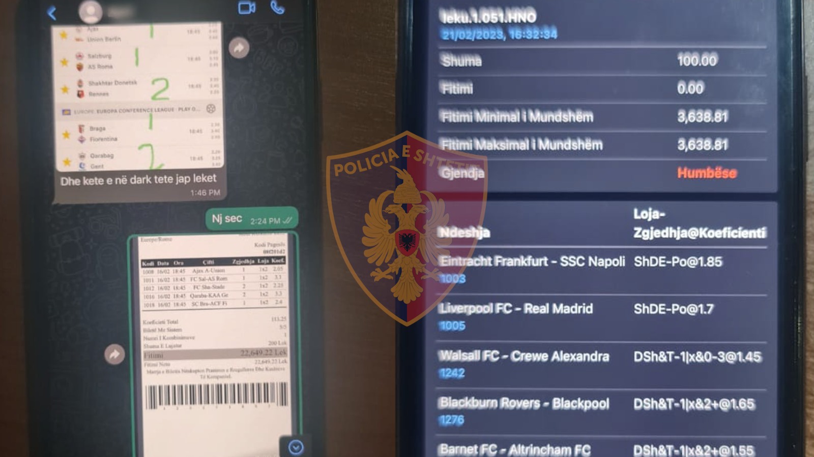 Shërbimet e Komisariatit të Policisë Përmet, në bashkëpunim me Seksionin për Hetimin e Trafiqeve të Paligjshme dhe Narkotikëve, në kuadër të planit operacional “Fati i lojërave”, arrestuan në flagrancë shtetasin K. H., 23 vjeç, banues në Përmet, si dhe nisi procedimi në gjendje të lirë për shtetasin G. R., 23 vjeç, banues në Përmet.