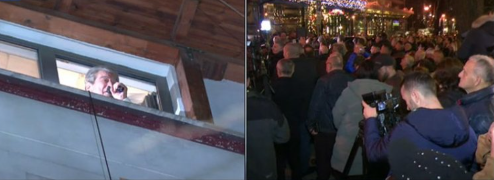 Sali Berisha ka marrë një megafon dhe është shfaqur në dritare mbrëmjen e sotme, duke thërritur nga maja e pallatit, për një grusht njerëzish që ishin mbledhur aty.