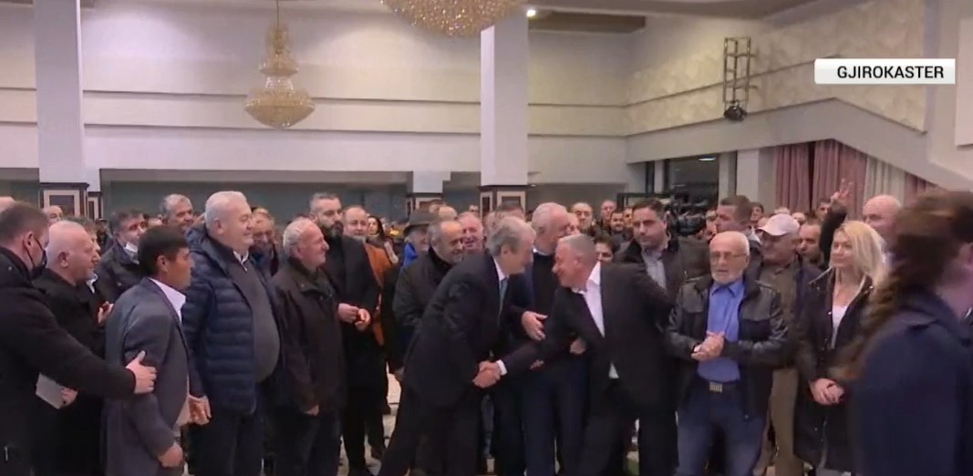 Berisha nis takimin në Gjirokastër me një përqafim me Spiro Kserën, ish-ministrin e tij të dënuar për korrupsion