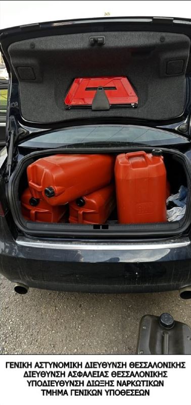 Policia greke ka publikuar pamje nga makina ku shqiptarët kishin fshehur drogën si edhe të bidonave plastikë ku ata kishin mundur të fusnin lëndën narkotike.
