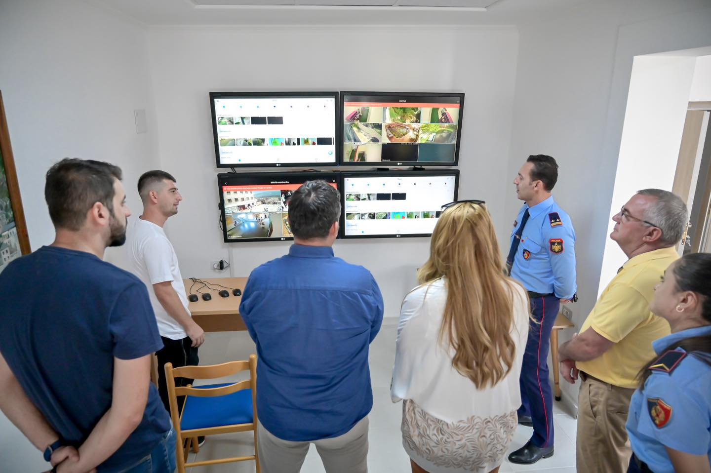 “Rrisim sigurinë për fëmijët tanë, kontrollojmë më mirë perimetrin dhe shmangim potencialisht ngjarje si ato që kemi parë në të kaluarën. Ambicia jonë është ta shtrijmë vendosjen e kamerave në të gjitha rrugët e brendshme të qytetit, jo për të bërë një “Big Brother“, por për të kaluar në një stad tjetër të sigurisë publike bashkë me Policinë e Shtetit duke shfrytëzuar të gjitha avantazhet që krijon teknologjia”, shkruan Golemi teksa pa nga afër sistemin e kamerave bashkë me drejtorin e policisë, Ardian Çipa.  ©argjiroja.net