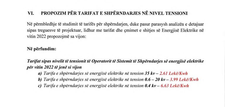 Në aplikimin që Operatori i Sistemit të Shpërndarjes, ka bërë pranë ERE për vitin 2022 parashikohet që tarifa e shpërndarjes së energjisë për bizneset e lidhur në tension 35 kilovolt që aktualisht është 1.5 lekë është kërkuar të rritet me të paktën 74 për qind duke e çuar atë në 2.61 lekë për çdo kilovat/orë energji të transmetuar.