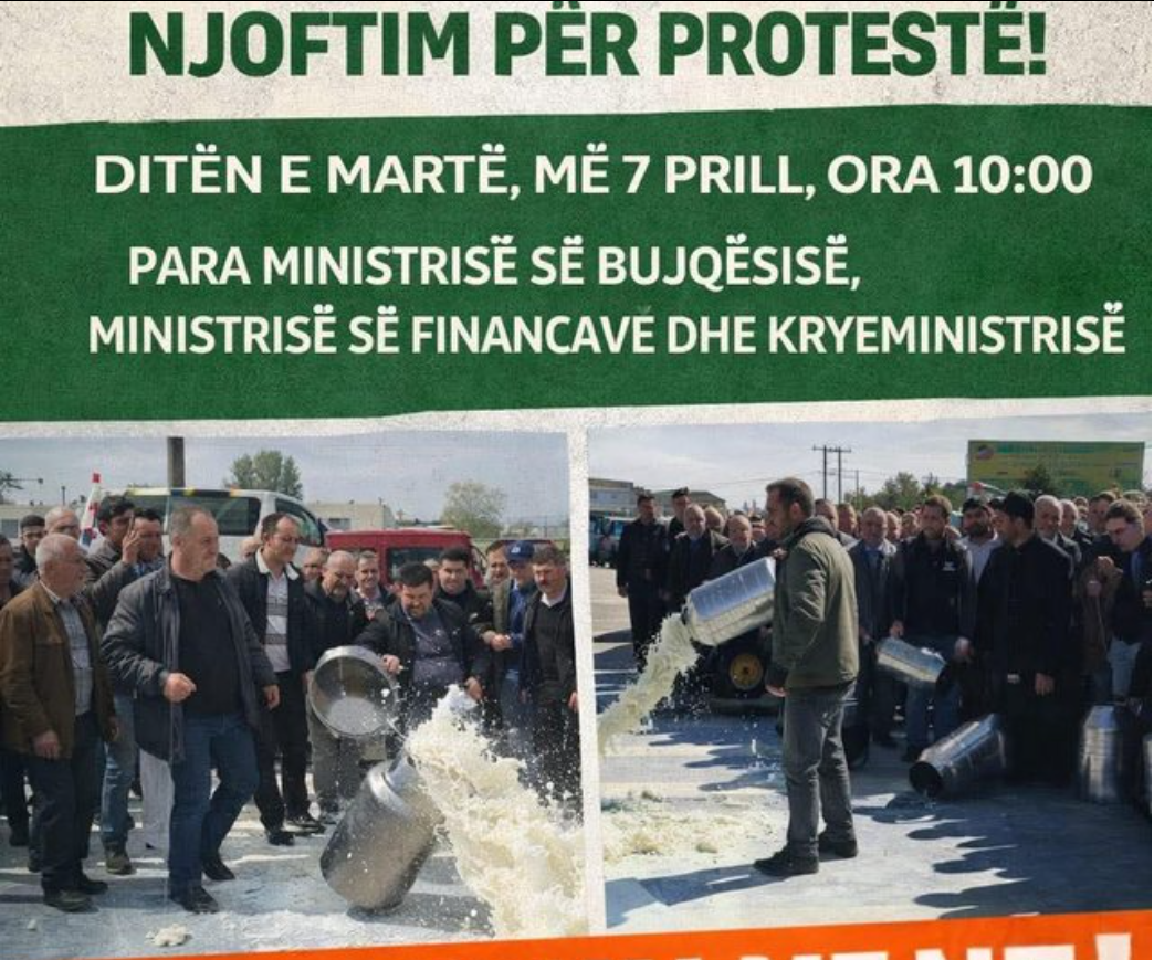 Shoqata “Blegtorët Prodhues të Qumështit” kanë njoftuar protestë ditën e martën në orën 10:00.