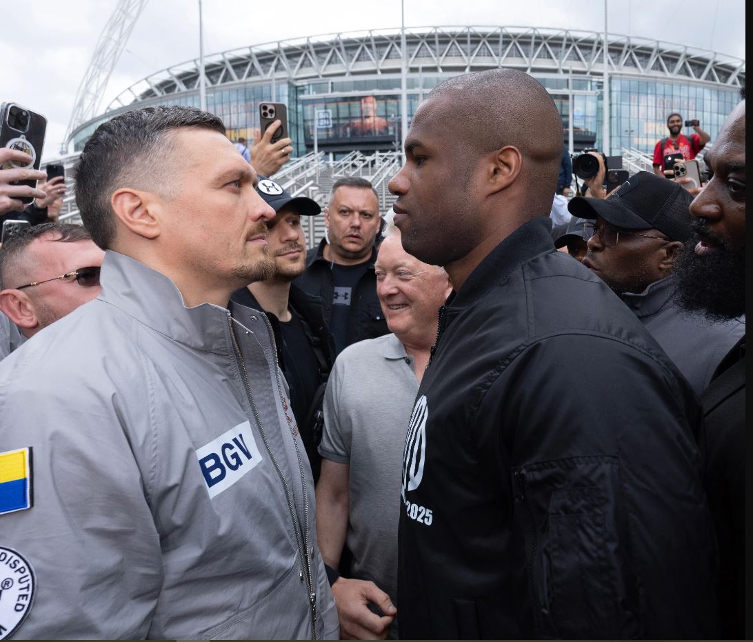 Usyk dhe Dubois u përballën për herë të parë në një takim intensiv ballë për ballë në shkallët e stadiumit Wembley të martën, për të nisur ndërtimin e atmosferës për duelin e tyre për titullin në peshat e rënda.