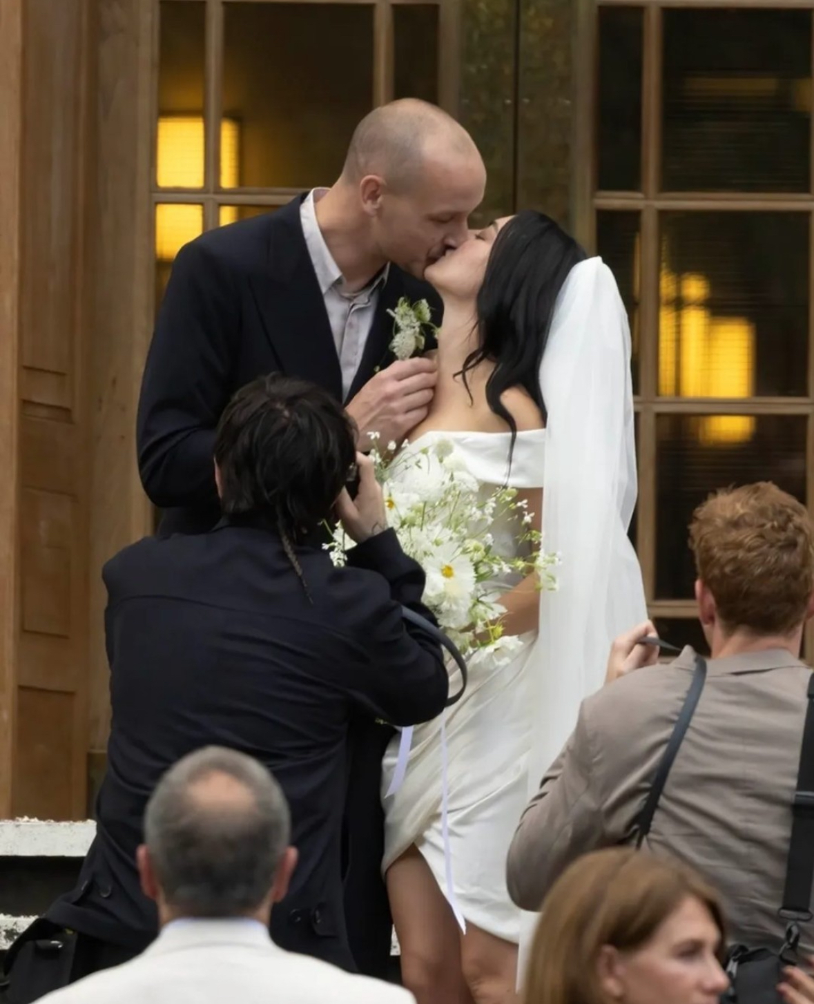 Fotot e para që po qarkullojnë online tregojnë Charlie-n me një fustan të bardhë me prekje “rock star bride” dhe George Daniel, bateristin e The 1975, me një kostum të errët, por pothuajse jashtë kornizave tradicionale.![]()