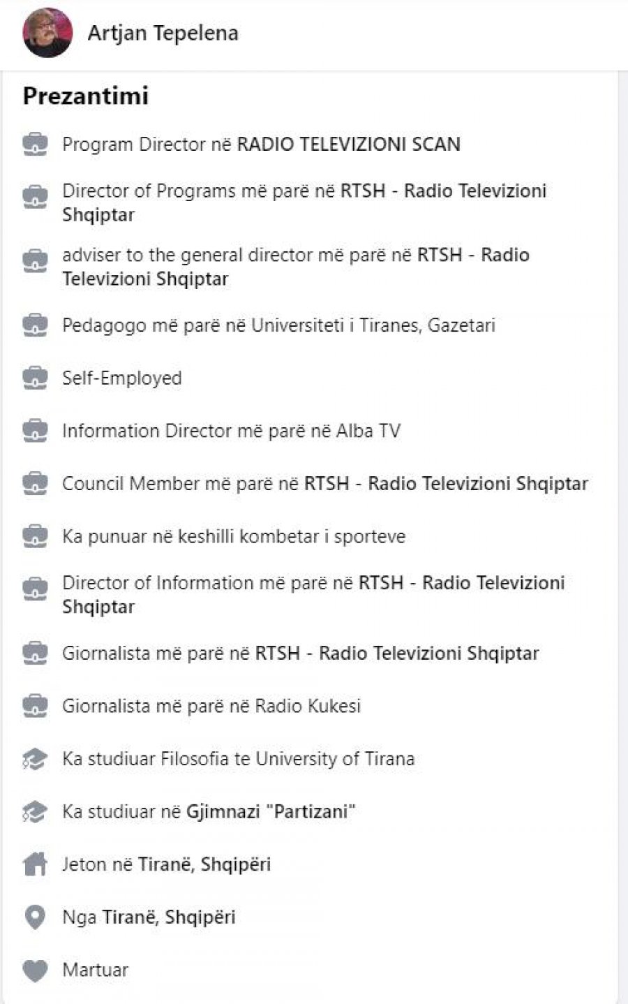 Artjan Tepelena ka qenë gazetar, kryeredaktor në TVSH, drejtor i lajmeve në TV Alba dhe së fundmi ishte pjesë e TVSCAN me një emision të tijin. Ai është vëllai i ambasadorit Ilir Tepelena.