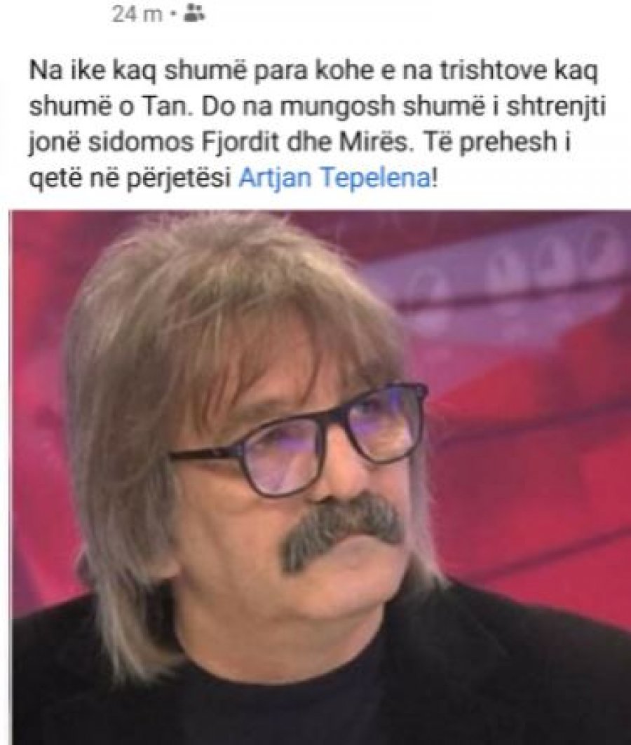 “Na ike kaq shumë para kohe e na trishtove kaq shumë o Tan. Do të na mungosh shumë i shtrenjti jonë, sidomos Fjordit dhe Mirës. Të prehesh i qetë në përjetësi” mbyllet postimi.