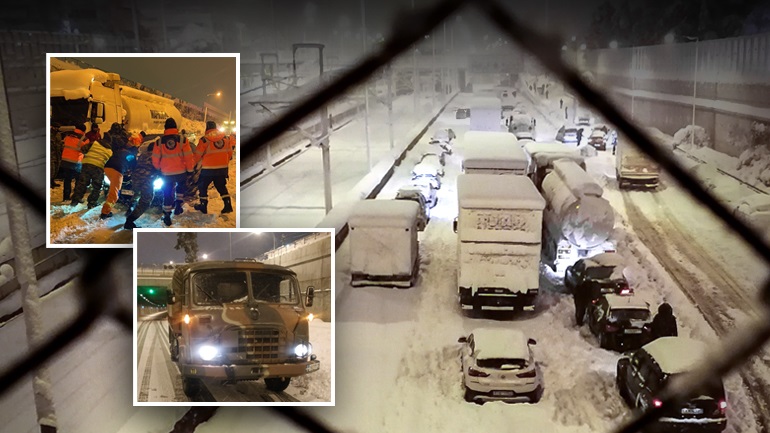Moti i acartë ka goditur Greqinë. Prej 22 orësh automjetet qëndrojnë të bllokuara në Attiki Odos. Mediat greke raportojnë se prej pasdites së djeshme ushtria, zjarrfikësit dhe efektivë të policie u janë vënë në ndihmë shoferëve që janë të bllokuar në automjetet e tyre. Operacioni ka vazhduar edhe gjatë natës. Ata kanë kaluar shumë orë të bllokuar, ndërsa ende nuk e dinë se çfarë do të bëhet.