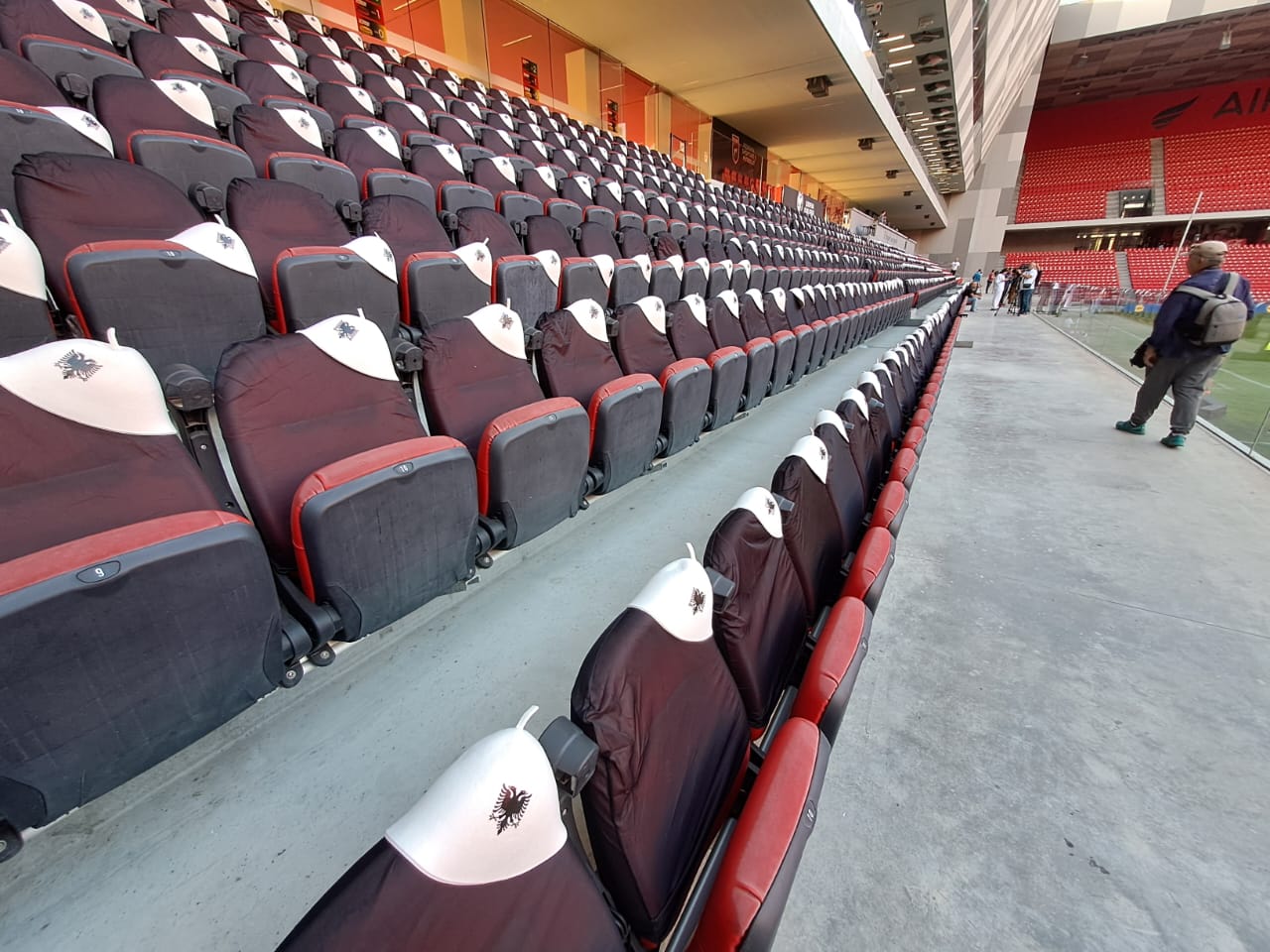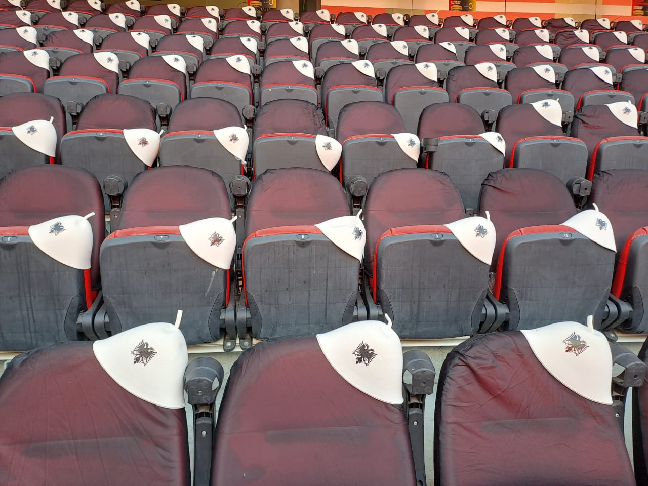 Në prag të ndeshjes me Çekinë, e cila do të luhet ditën e nesërme në “Air Albania” në orën 20:45 ka filluar te vendoset edhe dekori në stadium. Siç shihet në këto foto të LSA, në çdo stol është vendosur një qeleshe, të cilën do të kenë mundësi ta përdorin tifozët e kombëtares shqiptare. Stadiumi “Air Albania” me këtë dekor ka marrë një tjetër pamje spekatolare.
