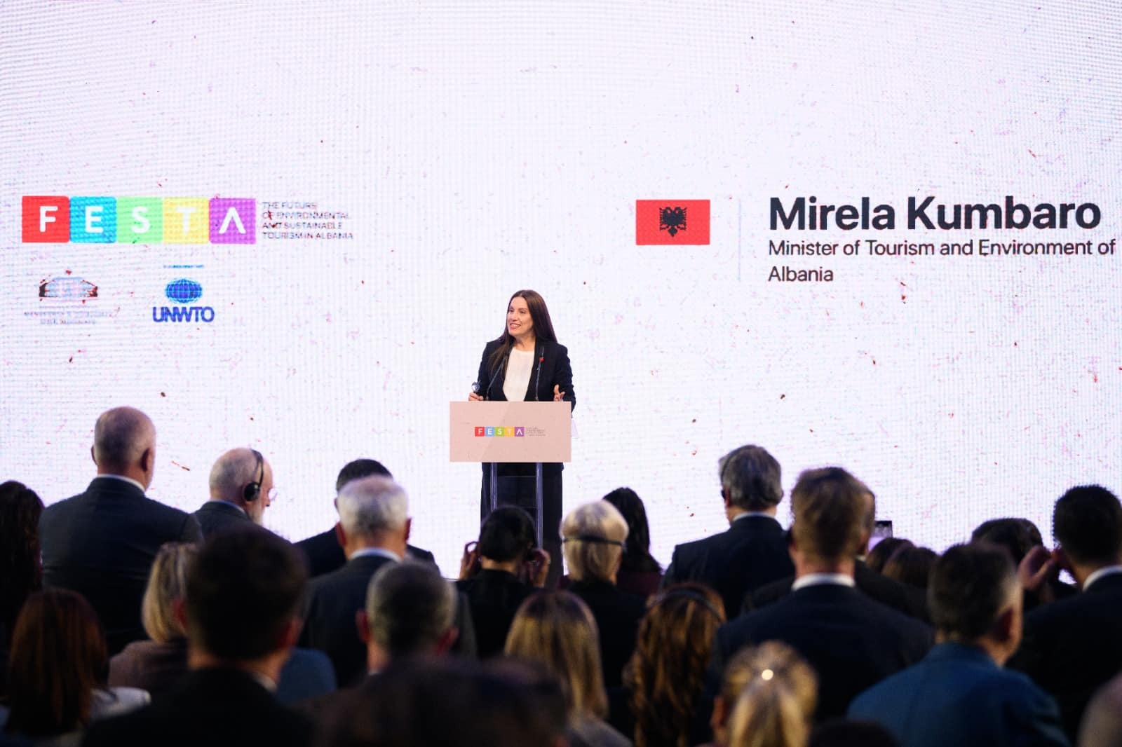 Në fjalën e saj, ministrja e Turizmit dhe Mjedisit Mirela Kumbaro u shpreh se Shqipëria paraqet një rast të veçantë të kombinimit të sektorit të turizmit dhe mjedisit në një portofol me qëllimin për t’i parë si plotësues të njëri tjetrit.