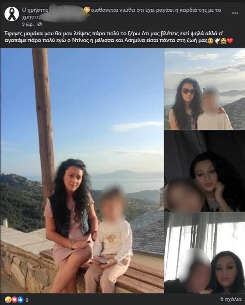 «U largove mami, do më mungosh shumë. E di që na sheh nga lart, por të duam shumë unë, Dino, Melisa dhe Asimina. Je gjithmonë në jetën tonë», shkroi vajza e vogël në një postim, pa mundur të kuptojë faktin që nuk do ta shihte më kurrë nënën e saj.
