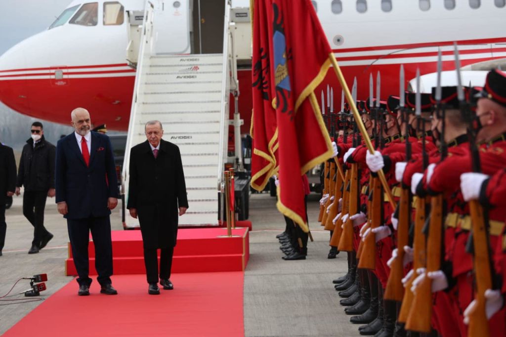 Kryeministri Edi Rama ka dalë vetë në aeroport, për të pritur Rexhep Taip Erdogan. Bashkë me të ishin edhe pothuajse gjithë ministrat. Për vizitën e Erdogan në Shqipëri, është bllokuar autostrada dhe një pjesë e Tiranës.