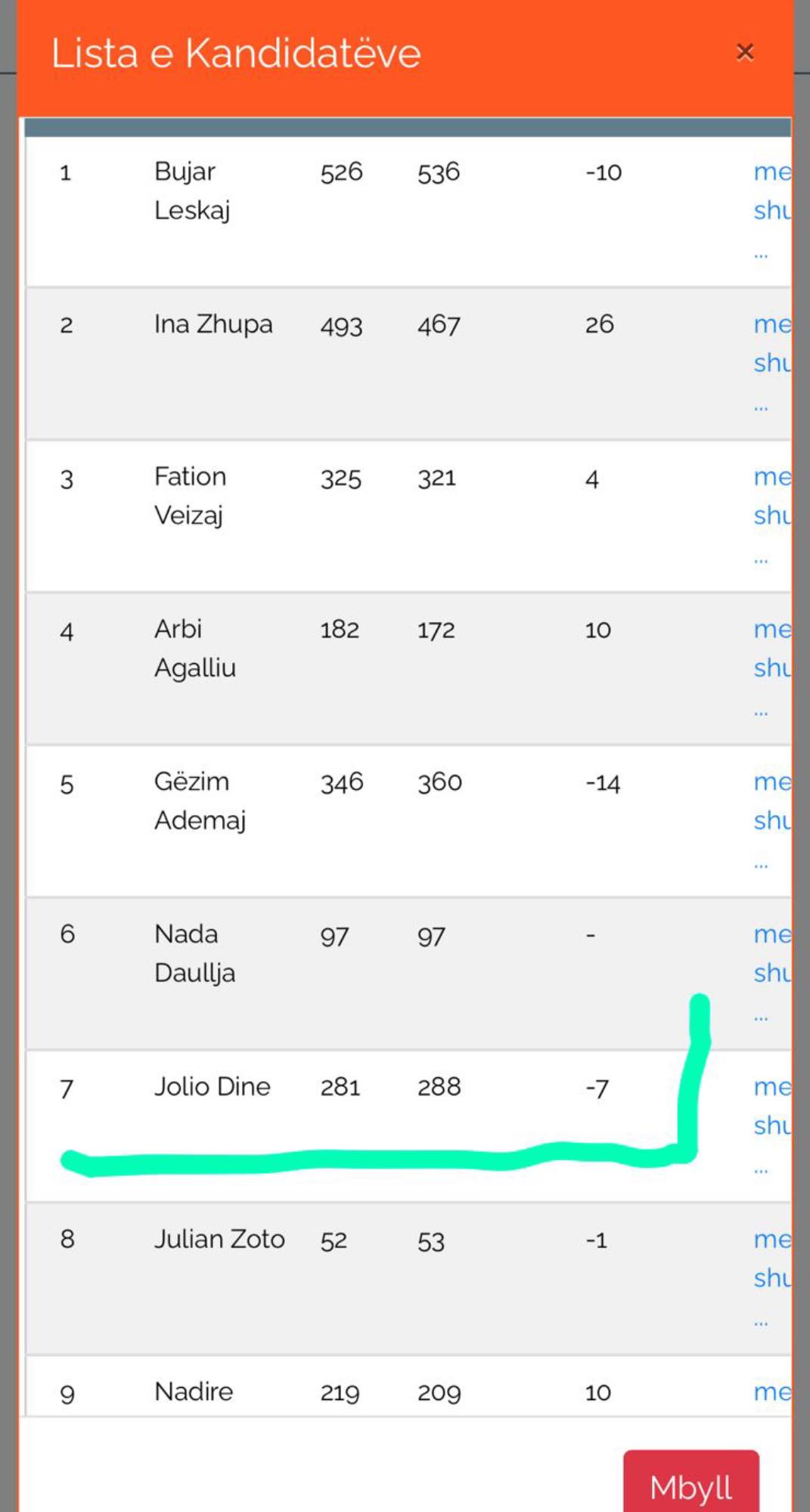 “Do ta mbyllja me aq statusin tim lidhur me votat e rinumeruara nga KQZ sot, por nuk rri dot pa informuar banoret e Bashkise Konispol, se komisioneret e Partise Demokratike kane arritur me sukses te vjedhin votat e qendres se votimit 4706 (Shkolla e Mesme Konispol). Konkretisht numeruesit 2 vota i kane vjedhur nga une si kandidat dhe 8 vota ia kane vjedhur Partise Demokratike (vote vetem per subjektin), per te favorizuar nje kandidature tjeter te ciles i kane shtuar 10 vota. Ky rinumerim me ben krenar, sepse tashme ne Bashkine Konispol, ne vendin e gjysherve te mi, rezultoj kandidati me i votuar me 451 vota ne total. Disa komisionere me precedente penale e disa me vese te turpshme morale, ne 25 prill tentuan me force te me nxirrnin te dytin duke deformuar vullnetin e banoreve te ndershem te kesaj zone, por e verteta vonon por nuk harron!”, shkruan Dine.