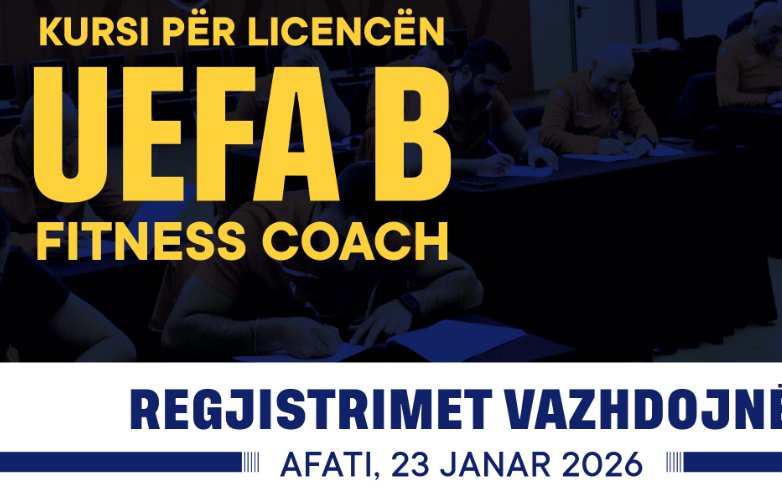 Federata e Futbollit bën me dije se vijon procesi i aplikimeve për edicioni¬n e dytë të kursit “UEFA B Fitness Coach”, një program formimi i certifikuar nga UEFA, i konceptuar për përgatitësit fizikë që synojnë të rrisin nivelin profesional dhe të integrohen në stafet teknike të futbollit modern.