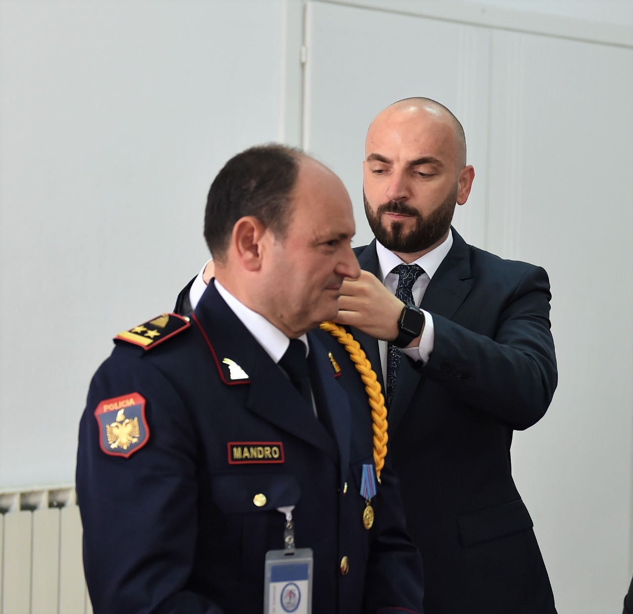 Më tej Nano ka vlerësuar integritetin, përgatitjen profesionale dhe përkushtimin që mbart profesor Mandro, dhe i ka vendosur në mënyrë simbolike gradën drejtues i lartë.