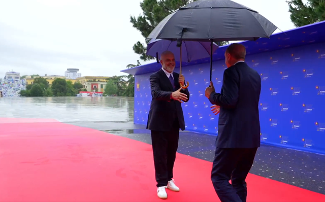 Presidenti turk Recep Tayyip Erdogan ka mbërritur në Tiranë në kuadër të Samitit të Komunitetit Politik Europian. Erdogan ka shtrënguar duart me kryeministri Edi Rama, i cili e priste në tapetin e kuq të vendosur në Sheshin Skënderbej. Presidenti turk më pas është shoqëruar nga kreu i qeverisë deri në vendin ku qendronin mediat. Por, Erdogan nuk u prononcua për mediat, duke dhënë një koment të shkurtër për miqësinë mes popullit turk dhe Shqipërisë.