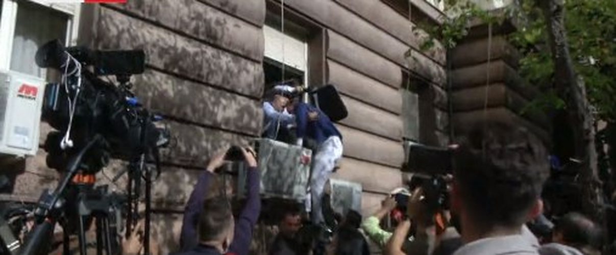 Madje ulën nga dritarja edhe një karrige për të ndihmuar deputetët të të ngjiteshin dhe të hynin në ambientet e godinës.