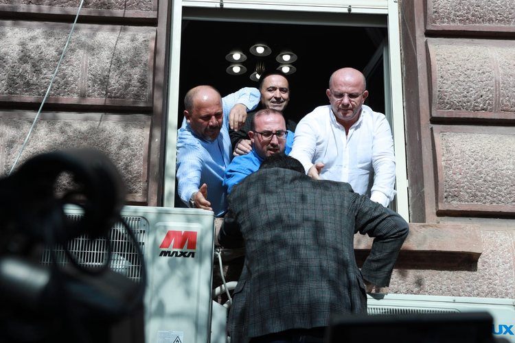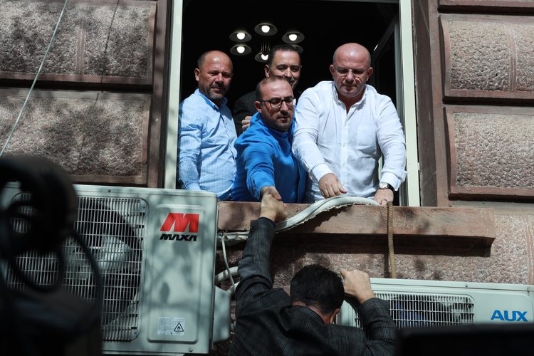Madje ulën nga dritarja edhe një karrige për të ndihmuar deputetët të të ngjiteshin dhe të hynin në ambientet e godinës.