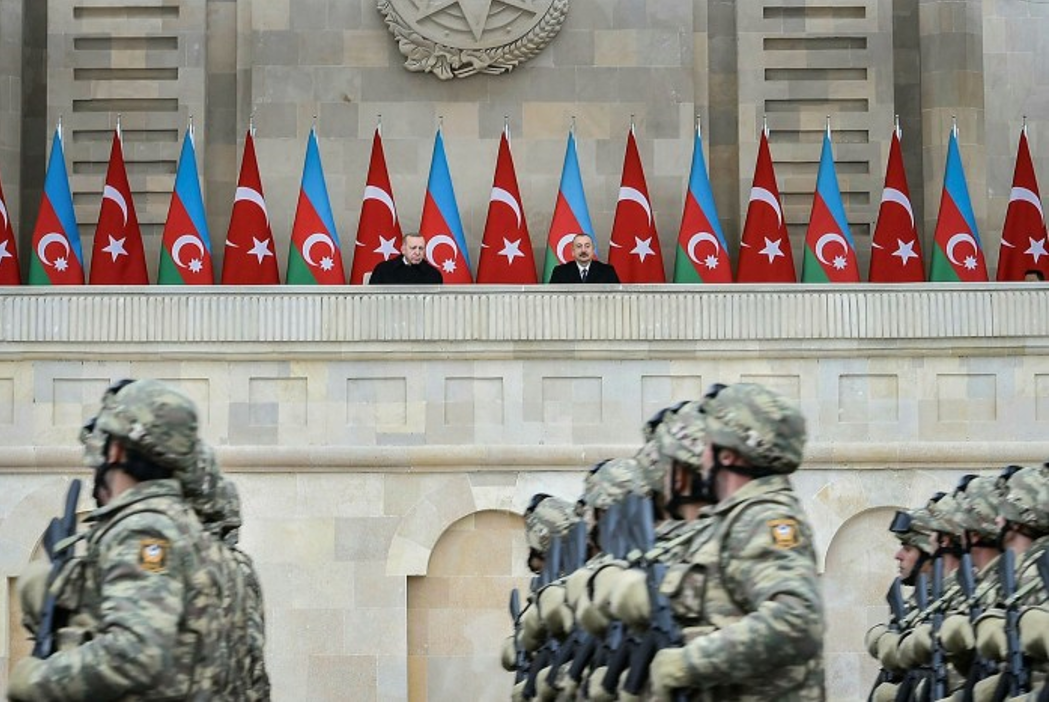 I ftuar si mysafir nderi, udhëheqësi turk pa se si dronët që ai furnizonte Baku-në ndërsa luftonte për të rimarrë tokat e humbura ndaj Armenisë në Nago-Karabak, iu dha një vend kryesor  në paradën ushtarake. “Sot është një ditë fitore dhe krenarie për të gjithë ne, për të gjithë botën turke,” tha z. Erdogan, i rrethuar nga flamuj turq dhe azerbajxhanas.