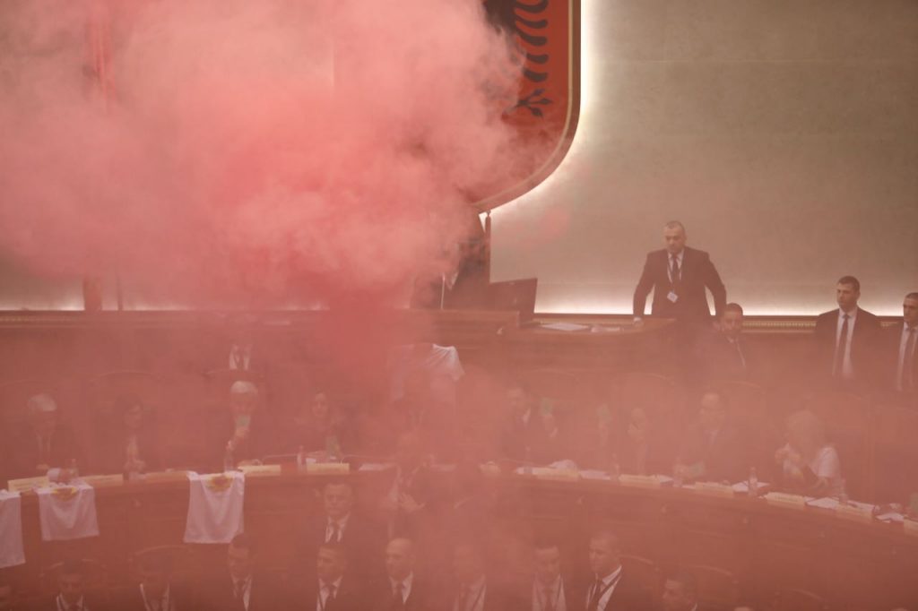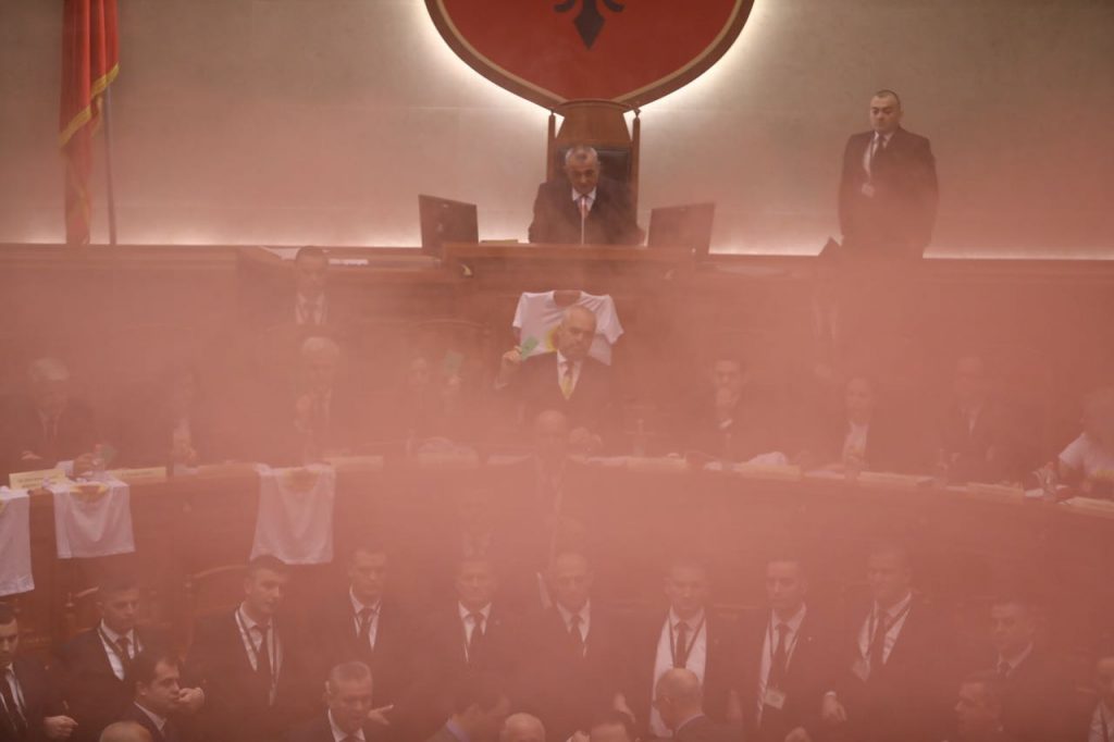 Zgjedhja e kryeprokurorit të ri të vendit është kthyer në një seancë lufte në Kuvendin e Shqipërisë. Deputetët e PD-së kanë kopjuar Vetëvendosjen në Kosovë, duke hedhur tymuese në sallë. Fotot më poshtë flasin më shumë se cdo fjalë tjetër.