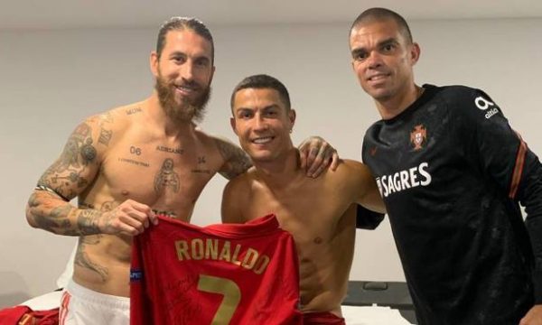 Sidoqoftë, pas ndeshjes së Portugalisë kundër Spanjës, e cila përfundoi barazim pa gola të mërkurën mbrëma, Ramos shkoi në zhveshtoren e Portugalisë dhe e mori një fanellë të nënshkruar nga Ronaldo, së bashku me ta prezent ka qenë edhe ish-mbrojtësi i Real Madrid, Pepe.