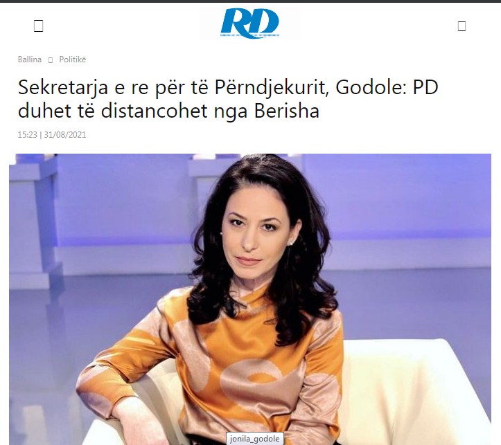 Zërave kritikë në PD i është shtuar edhe profesoreshë Jonila Godole, Sekretarja e re për të Përndjekurit në Partinë Demokratike. Në deklaratën e parë për mediat Sekretarja e re në PD thotë se PD duhet te distancohet nga Berisha njësoj si CDU nga Kohl. Por përveç deklaratës së Godoles, ajo çfarë përbën lajm, është fakti se deklarata e saj është publikuar në gazetën zyrtare të PD, Rilindja Demokratike.