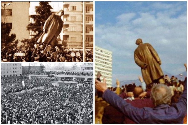 Turma prej mijëra vetësh që mbërriti te blloku i ministrive iu drejtua monumentit të Hoxhës që gjendej në shesh prej katër vitesh, para Muzeut Kombëtar. Fillimisht nuk u mor vesh se çfarë qëllimi kishin. Pastaj u bë e qartë: monumenti ishte objektivi. Studentët atë kërkonin: kokën e Enver Hoxhës.