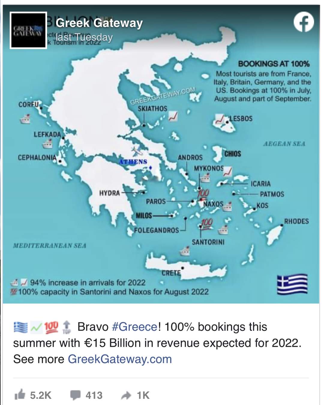 Rreth 4,6% turistë më shumë se në vitin 2019 mbërritën në aeroportet e Greqisë këtë vit, ndërsa gjatë korrikut besohet se kanë mbërritur 10% më shumë. Gushti gjithashtu ka shënuar nivele të paprecedentë të mbërritjeve të turistëve, ndërsa numri i prenotimeve po ashtu vijon të jetë i lartë edhe për muajin shtator.