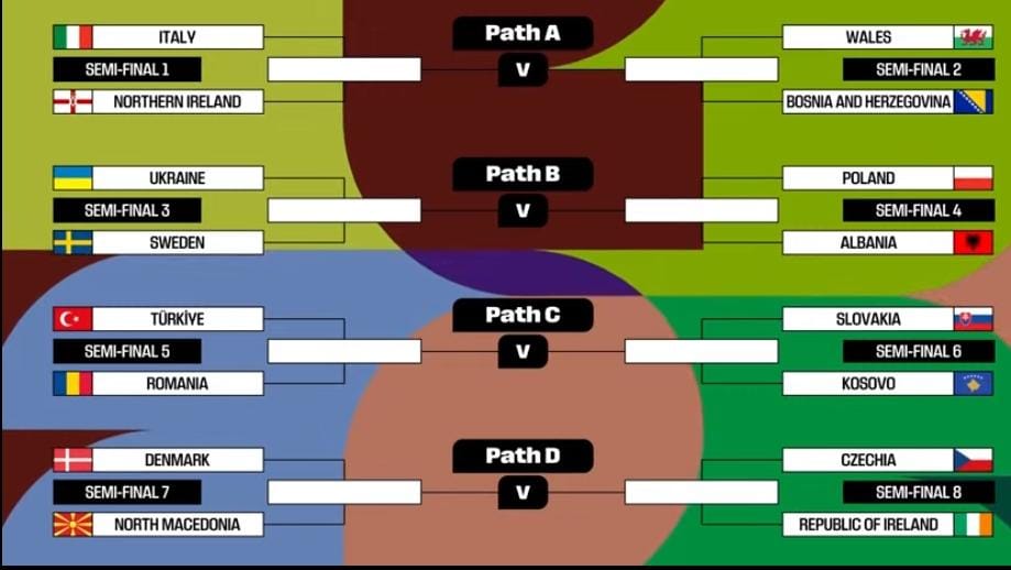Në selinë e FIFA-s në Zyrih të Zvicrës është hedhur shorti ku janë mësuar çiftet gjysmëfinale që do të garojnë për një biletë në Kupën e Botës 2026.