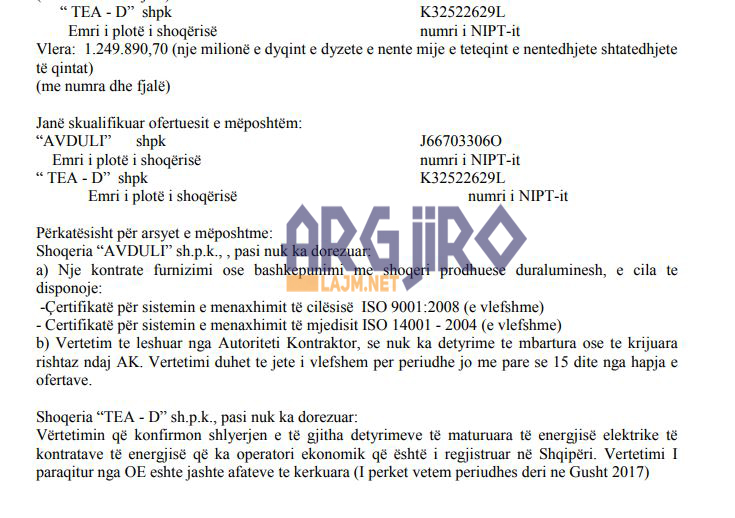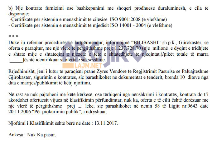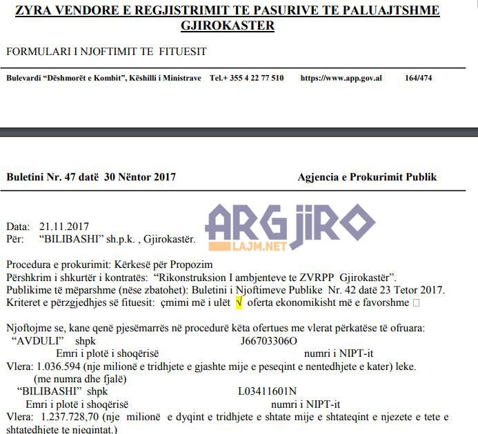 Zyra Vendore e Regjistrimit Pasurisë së Paluajteshme Gjirokastër (Hipoteka) ka bërë një tender për rikonstruksionin e ambienteve të saj. Pesë ditë më parë është shpallur kompania fituese që do të kryejë punimet. Ajo është ‘Bilibashi’ Sh.p.k. Vlera e tenderit është rreth 12.4 milionë lekë të vjetra. Përzgjedhja e saj thuhet në njoftim është bërë mbi këto kritere; çmimi më i ulët dhe oferta ekonomikisht më e favorshme. Bashkë me firmën ‘Bilibashi’ Sh.p.k, në garë për këtë tender ishin edhe dy firma të tjera. ‘Avduli’ Sh.p.k dhe ‘TEA-AD’ Sh.p.k Afati i përfundimit të punimeve nuk përcaktohet. Së fundi është përfolur se Hipoteka Gjirokastër kërkonte të transferohej me ambiente te ish-shtëpia e ushtarakëve, por ajo ndërtesë i është dhënë në përdorim Universitetit ‘Eqrem Çabej’.
