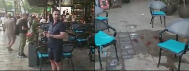 Këto janë pamjet që vijnë nga një lokal në zonat e nëntë-katëshve në Tiranë, ku një tifoz holandez është konfliktuar dhunshëm me qytetarët vendas.