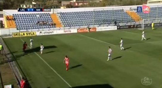 Sa i përket ndeshjes, Laçi kaloi në avantazh afër minutës 40-të me penallti. Regi Lushkja futet në zonë, por Moraes e ndalon me një faull brenda në zonë. Hamiti e kontrollon në VAR dhe konfirmohet penalltia. Guindo tregohet i saktë. Mbyllet 1-0 e para.