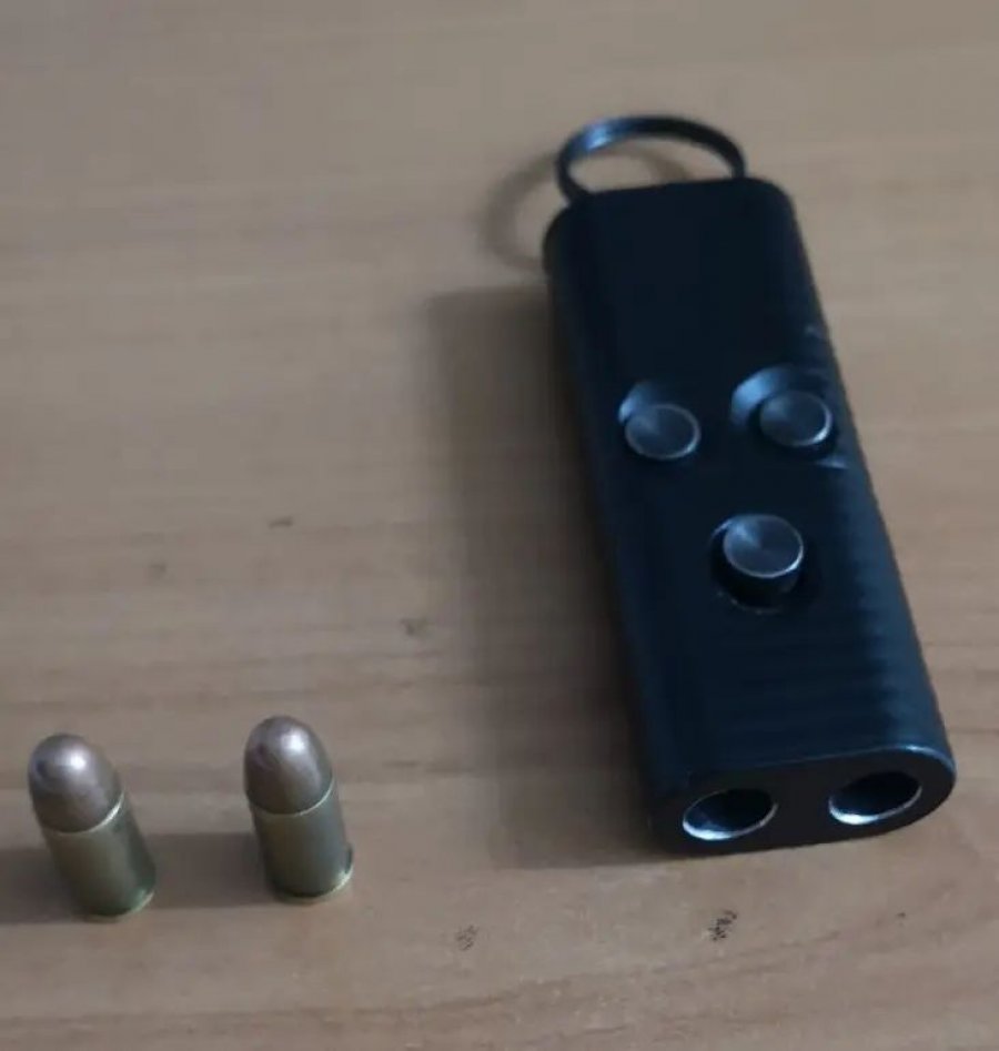Gjatë kontrollit atij i’u gjet një armë zjarri në formën e mbajtëses së çelësave si dhe dy fishekë arme zjarri.