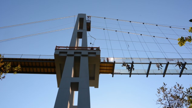 Në një imazh të shpërndarë nga media shtetërore kineze Xinhua në faqen kineze të mediave sociale Weibo, një person mund të shihet duke u ngjitur në hekurudhën e urës, i rrethuar nga panelet e platformës së xhamit të zhdukur dhe të dëmtuar.