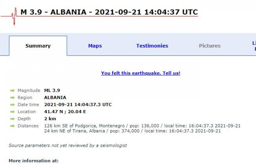 Në të njëjtën ditë, pothuajse në të njëtën orë si sot, dy vite më parë një tërmet i fortë tronditi vendin. Sot më 21 shtator, në ora 4:04 të pasdrekes një tërmet i shkurtër por i fortë lëkundi vendin. Dy vite më parë, më 21 shtator 2019, në orën 4:09 të pasdrekes një tërmet i magnitudës 5.8 me epiqendër në detin Adriatik dhe intensitet 7.5 ballë, 30 km në veri të Durrësit, është ndjerë në të gjithë qytetet e vendit.